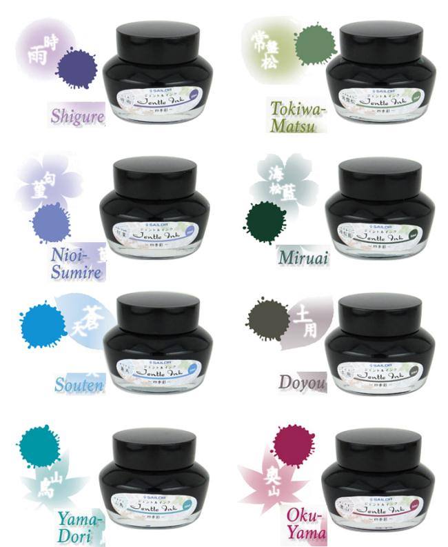 The ink collection features eight colors inspired by the beautiful four seasons of Japan Each bottle contains 50 ml is designed to clever. You are able to enjoy every last drop of your ink! Simply flip the bottle upside-down and back to fill the reservoir. When you use the end of a bottle, you can make the steps: